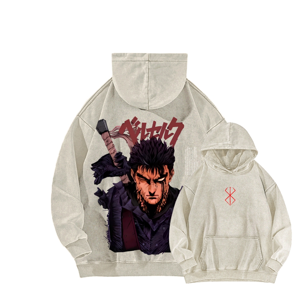 Berserk Oversized T-Shirt, Unisex Manga StreetwearBerserk Guts Dark Washed Tshirt